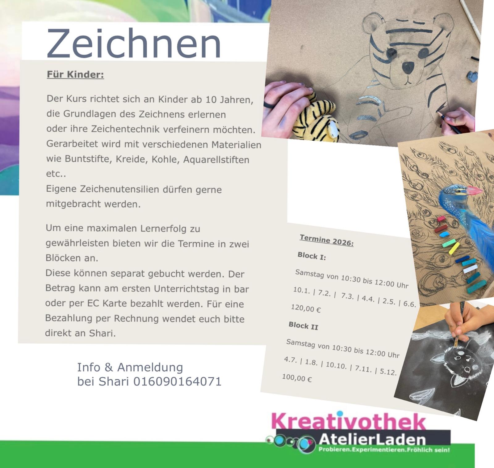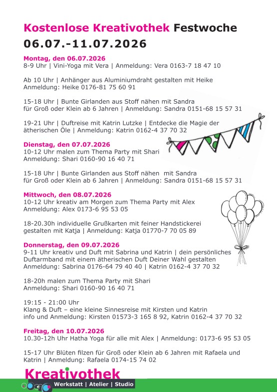 für genaue Zeiten und Info schau bitte unter Kurstermine oder NähKurse, MalKurse.