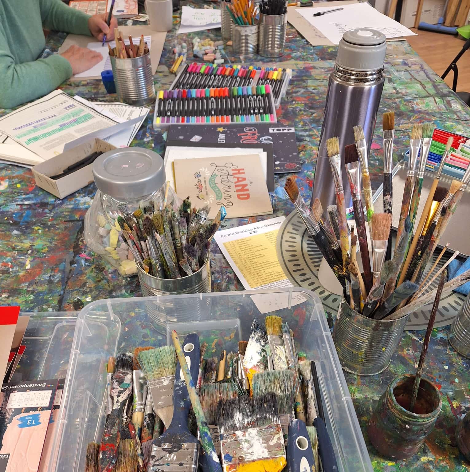 Wir malen mit Acrylfarbe auf Leinwand, zeichnen oder gestalten deinen Lieblingsspruch mit Handlettering. Hier kannst du vieles einfach mal ausprobieren. Bring dein eigenes Projekt, eine Idee oder Vorlage mit oder lass dich inspirieren. Es sind keine Vorkenntnisse nötig.