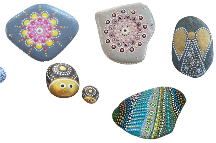 Der Kurs ist für AnfängerInnen und auch Fortgeschrittene geeignet – Du brauchst keine Vorkenntnisse. Am Ende nimmst Du deine individuell gestalteten Steine mit nach Hause.